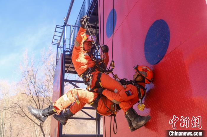 山岳救援繩索個(gè)人技術(shù)競賽現(xiàn)場,全面考驗(yàn)參賽隊(duì)員繩結(jié)制作、倍力系統(tǒng)制作、上升、過繩結(jié)、輔助攀登、下降、繩索轉(zhuǎn)換等多項(xiàng)救援技術(shù)。