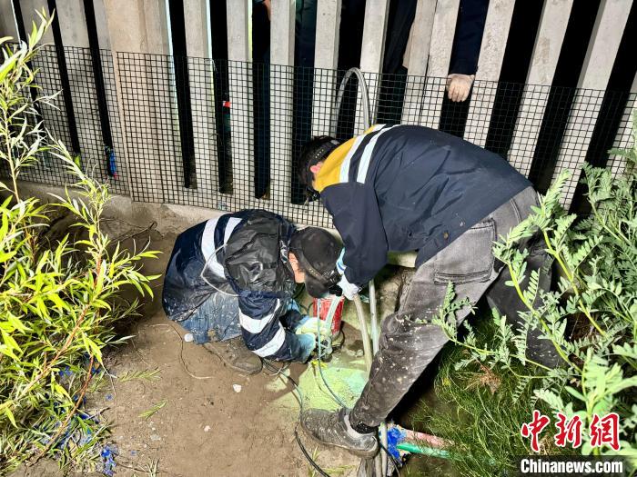 圖為桑日綜合維修車(chē)間綜合工區(qū)職工在排水溝進(jìn)行抽水作業(yè)。馬生明拍攝