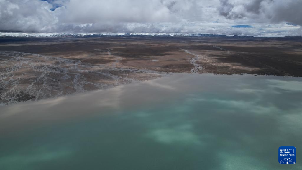 這是9月8日拍攝的令戈錯(cuò),遠(yuǎn)處為普若崗日冰原(無人機(jī)照片)。新華社記者 劉詩平 攝