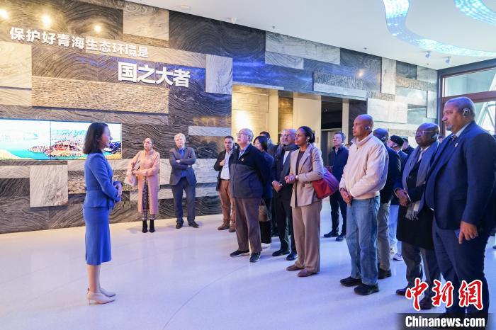 圖為代表團一行在青海省自然資源博物館內(nèi)了解青海湖泊。中新社記者 馬銘言 攝