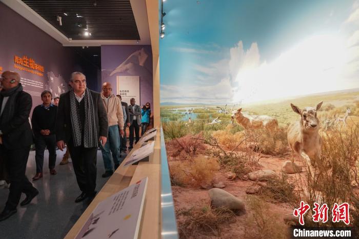 圖為代表團一行在青海省自然資源博物館內(nèi)通過標本了解高原野生動物。中新社記者 馬銘言 攝