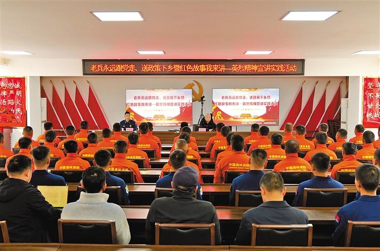 為發(fā)揚(yáng)退役軍人“退伍不褪色”的精神,充分發(fā)揮先進(jìn)典型事跡的示范引領(lǐng)作用,教育廣大指戰(zhàn)員在思想上認(rèn)同、行動(dòng)上追隨,忠誠(chéng)履職建功、永葆軍人本色,日前,西藏林芝市森林消防支隊(duì)邀請(qǐng)自治區(qū)退役軍人事務(wù)廳“老兵宣講團(tuán)”來(lái)隊(duì)開展老兵永遠(yuǎn)跟黨走、送政策下鄉(xiāng)暨紅色故事我來(lái)講——英烈精神宣講實(shí)踐活動(dòng)。