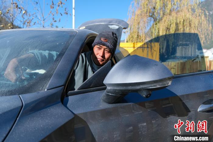 12月17日,來自江蘇昆山的自駕游客劉兵在西藏波密縣一營(yíng)地內(nèi)休整。中新社記者 江飛波 攝