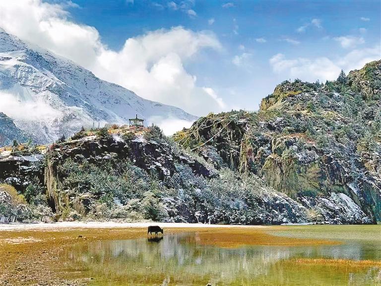 冬季的昌都,是一場(chǎng)視覺的盛宴。當(dāng)潔白的雪花悠然飄落,覆蓋了連綿的山巒與靜謐的然烏湖,這里仿若成了大自然巧手繪制的一幅多彩畫卷。而大雪覆蓋著的三色湖,此刻也別有風(fēng)情,皚皚白雪如同輕柔的面紗,遮住了她的容顏,卻又增添了幾分神秘的魅力。遠(yuǎn)遠(yuǎn)望去,仿佛三個(gè)羞澀的美麗姑娘,欲語(yǔ)還休,吸引著人們?nèi)ヌ綄に拿孛?。再看看孜珠寺,金頂白雪、紅墻銀衣,古色古香的建筑加上絕美的雪景,時(shí)間仿佛在此刻凝結(jié)。