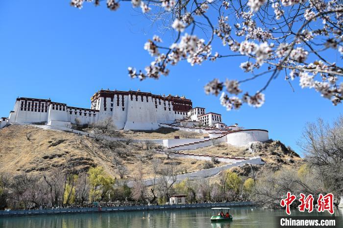 3月24日,在西藏自治區(qū)拉薩市宗角祿康公園,杏花競相綻放,春意盎然。中新社記者 貢嘎來松 攝