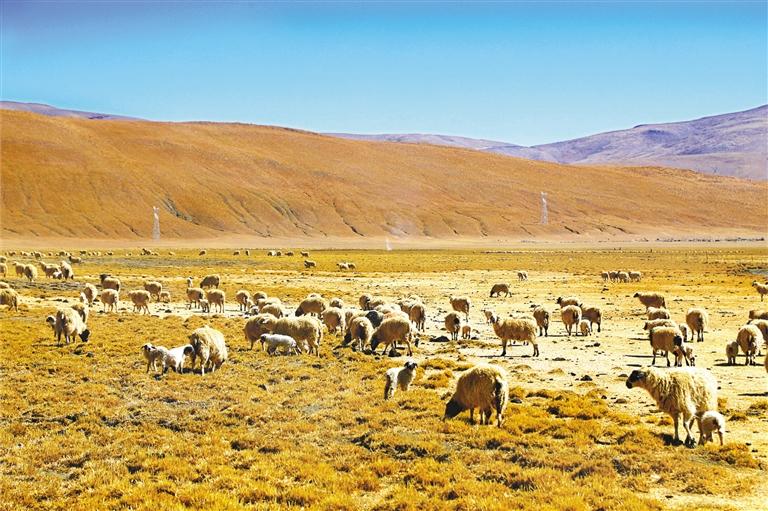 哲古草原上,羊群正悠閑地吃草。牧民旦增懷里抱著一只小羊坐在路邊,輕柔地?fù)崦?。“這是我們牧民的希望啊。”他的臉上洋溢著收獲的喜悅。