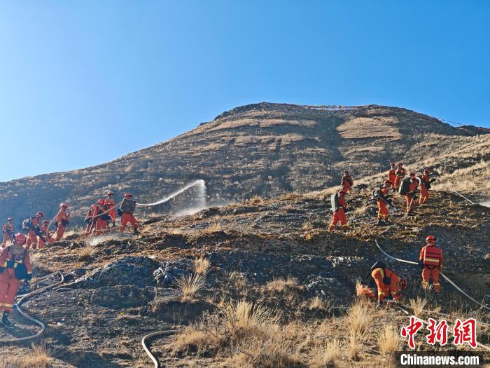 圖為西藏森林消防總隊隊員進行可燃物增濕灑水作業(yè)。王治平 攝