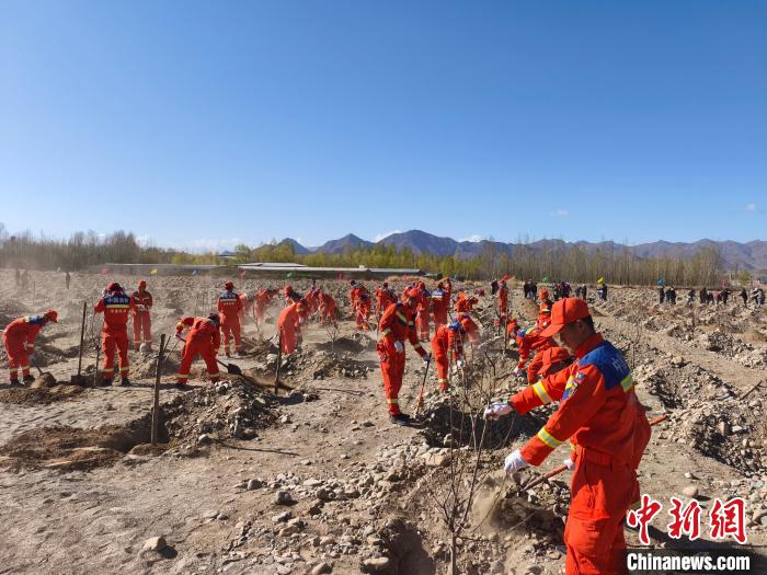 圖為日喀則市森林消防大隊義務(wù)植樹活動現(xiàn)場。洛桑頓珠 攝