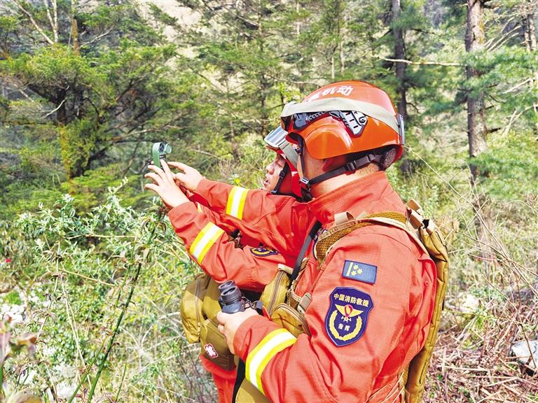 巡護(hù)隊(duì)伍踏上了蜿蜒曲折的山路。道路崎嶇陡峭,許多路段僅容一人通行,一側(cè)是近乎垂直的山坡,另一側(cè)是深不見(jiàn)底的山谷,令人望而生畏。消防員們背著重達(dá)30斤的各類(lèi)防火裝備,隨著海拔不斷升高,每一步前行都需要耗費(fèi)巨大的體力。但是沒(méi)有一人掉隊(duì),他們相互鼓勵(lì)、彼此扶持,在艱難的山路上穩(wěn)步前進(jìn)。行進(jìn)途中,他們手持測(cè)風(fēng)儀、望遠(yuǎn)鏡等專(zhuān)業(yè)設(shè)備,仔細(xì)觀察著每一處植被狀況,不放過(guò)任何可能存在的火源隱患。