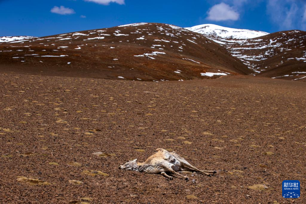 遷徙路上死于非命的一頭雌性藏羚羊(6月8日攝)。新華社記者 姜帆 攝