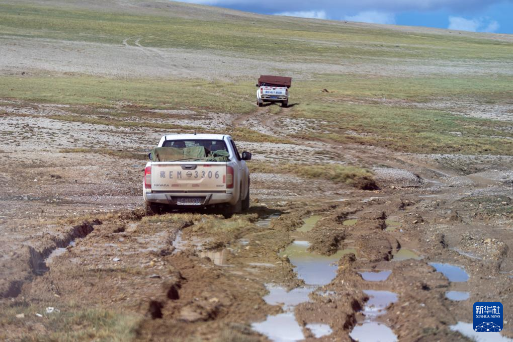 措羅木管理站的野生動(dòng)物管護(hù)員驅(qū)車前往無人區(qū)深處的森隆藏布河畔(7月14日攝)。新華社記者 姜帆 攝