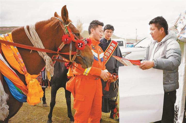 在那曲市廣闊的賽馬場上,一支特殊的“馬背上的消防宣傳服務(wù)隊(duì)”近日成為亮麗風(fēng)景。為保障2025年那曲市恰青賽馬節(jié)期間消防安全,那曲市消防救援支隊(duì)創(chuàng)新工作方法,聯(lián)合那曲市馬術(shù)協(xié)會工作人員與消防志愿者,騎馬深入牧民帳篷營地及賽事區(qū)域,將消防安全知識送至每一位群眾身邊。