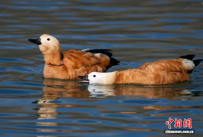 圖為12月17日,拉薩市宗角祿康公園內(nèi)越冬的赤麻鴨。李林 攝