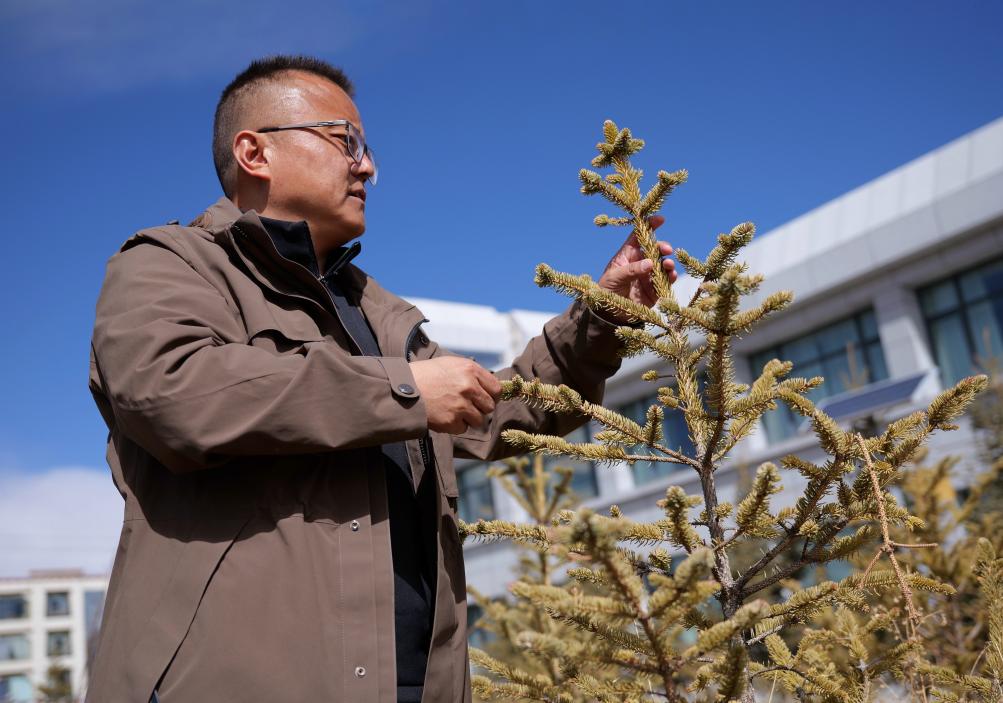 3月20日上午10點(diǎn)30分,扎西像往常一樣來到市科技局的院子里,仔細(xì)查看樹木的長勢(shì)。他彎腰伸手,摸了摸樹的葉子和枝條,又踩了踩樹下的土壤?!霸蕉闆r總體穩(wěn)定,也有了返青跡象,可以開始澆水、施肥了。”扎西欣喜地說。