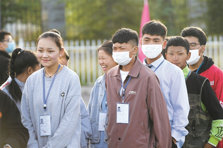 當(dāng)日上午8時(shí),考生統(tǒng)一乘坐拉薩市公交公司高考愛(ài)心接送車來(lái)到拉薩中學(xué)考點(diǎn)。在疫情防控常態(tài)化背景下,考生手拿準(zhǔn)考證、身份證,戴著口罩,排隊(duì)測(cè)量體溫之后,有序進(jìn)入考場(chǎng)。為應(yīng)對(duì)突發(fā)狀況,考點(diǎn)外設(shè)置了隔離區(qū),并有醫(yī)療人員駐守。參加高考的考生之間也互相加油打氣,考生拉巴頓珠說(shuō):“祝愿大家都能好好發(fā)揮,考上自己心儀的學(xué)校。”