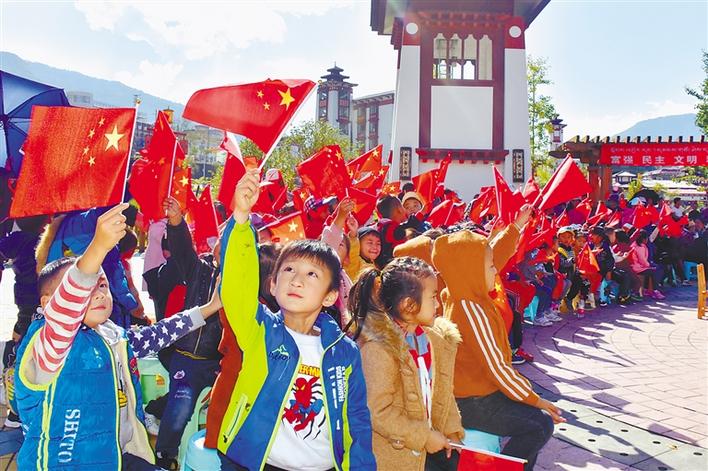 墨脫縣舉辦的文體活動中,小朋友手持小國旗,表達愛國情。記者 孫文娟 通訊員 李龍勇 攝
