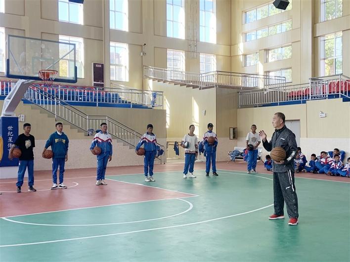 王志國(guó)給拉薩四中學(xué)生上籃球課