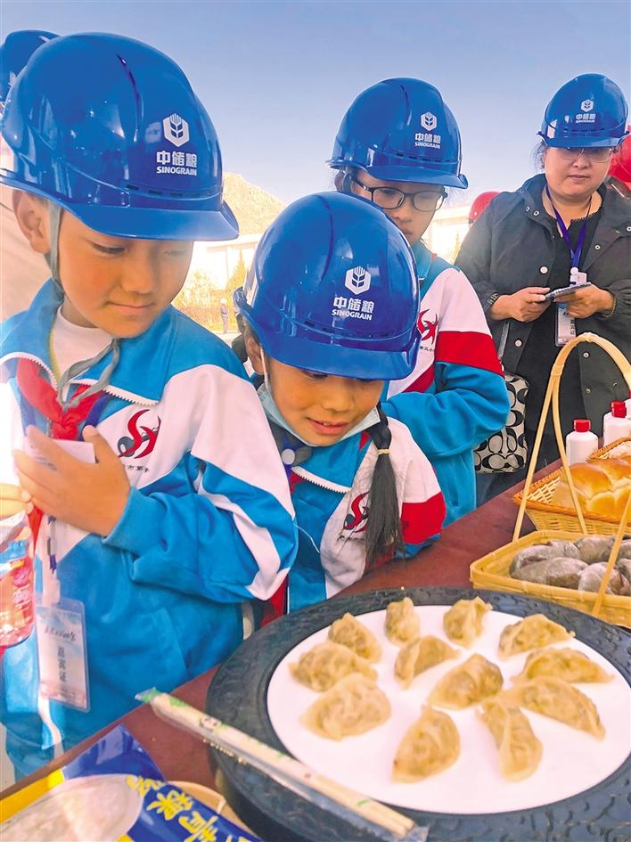 拉薩市第三小學(xué)學(xué)生觀看青稞制成的餃子。
