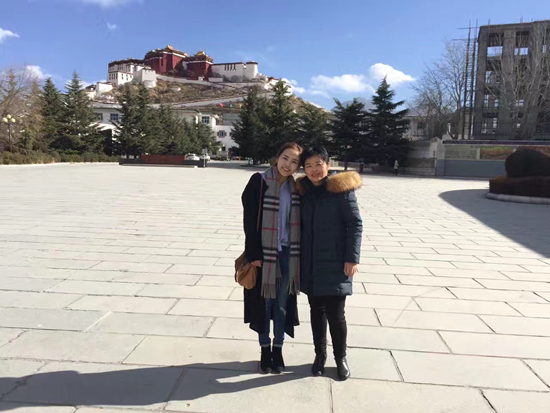 2017年1月,09屆宏志生諾吉·曲擁措姆(左一)去拉薩中學(xué)看望呂淑霞。曲擁措姆現(xiàn)為哈爾濱工業(yè)大學(xué)在職博士,在共青團中央統(tǒng)戰(zhàn)部民族宗教處掛職。