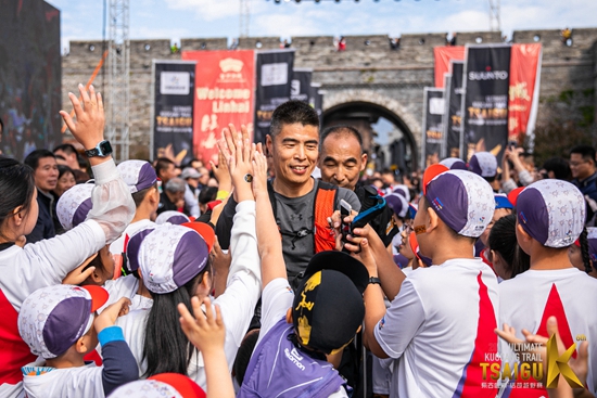 10月25日,珊瑚越野·少兒賽體彩柴古公益站,孩子們出發(fā)前,與完賽歸來的115公里選手互動(dòng)。賽事組委會(huì)有關(guān)人士介紹,之所以如此安排孩子們的出發(fā)時(shí)間, 就是想引導(dǎo)孩子們感受來自115公里組別的堅(jiān)持和不放棄。讓孩子們感受到對(duì)他人贊美、鼓勵(lì)、共情的同時(shí),他們自己也能收獲到喜悅。