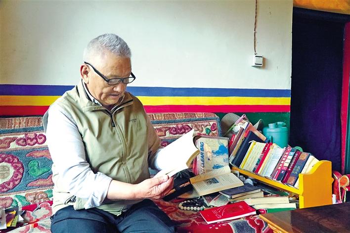 圖為洛桑公覺在翻閱資料。段敏 攝