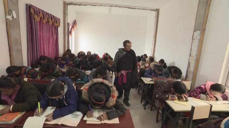 帕那鎮(zhèn)一村宣講員嘎達(dá)耐心的用通俗易懂的本土藏語(yǔ)給這些大齡學(xué)生講漢語(yǔ)拼音課,課堂上有20名來(lái)自附近的牧民群眾,他們不時(shí)低頭做筆記、不時(shí)舉手提問(wèn),生怕錯(cuò)過(guò)每一個(gè)字節(jié)。60歲的次吉是這里年齡最大的學(xué)員,一年中她最期盼的事情就是參加“夜?!睂W(xué)習(xí)。“我小時(shí)候條件不好,沒(méi)有機(jī)會(huì)接受教育,文化水平低,現(xiàn)在條件好了,就來(lái)夜校學(xué)習(xí),老師講得通俗易懂,我感覺(jué)收獲很多?!贝渭獙?duì)說(shuō)。