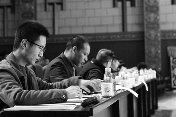 評(píng)委查看選手資料。記者 秦盼 劉凡