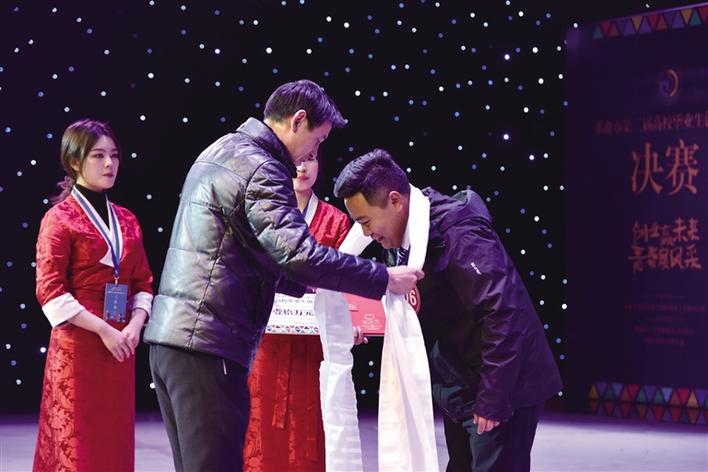 那曲市副市長母興斌為次仁珠扎頒獎。