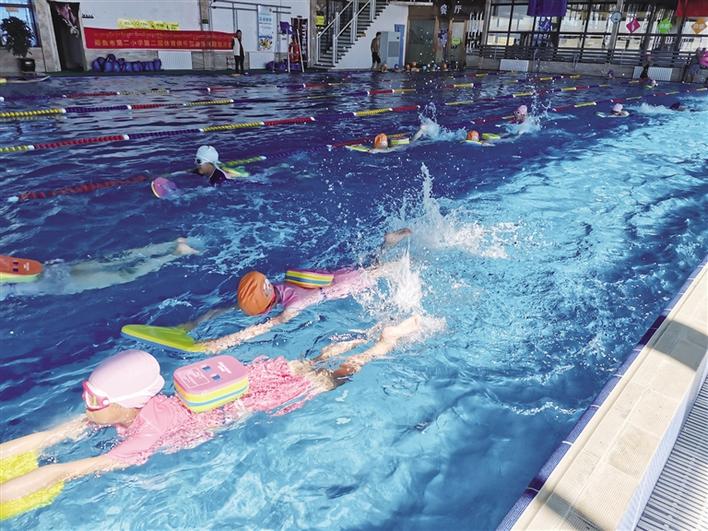 小學生在次仁珠扎的游泳館內(nèi)參加培訓。