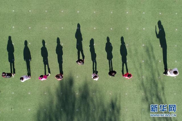 12月14日,河北省樂(lè)亭縣第三幼兒園的孩子們?cè)谕嫖椠堄螒颍o(wú)人機(jī)照片)。