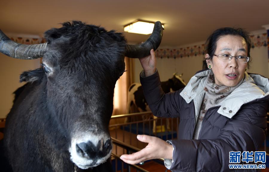2019年2月28日,在西藏自治區(qū)農科院畜科所,姬秋梅利用牦牛標本講解牦牛生長特點。1988年,姬秋梅從西藏民族學院(現(xiàn)西藏民族大學)農牧系畢業(yè),被分配到西藏自治區(qū)農科院畜科所,從事牦牛研究工作,后在中國科學院地理科學與資源研究所繼續(xù)深造,并出國留學獲得博士學位,2002年歸國。新華社記者 覺果 攝