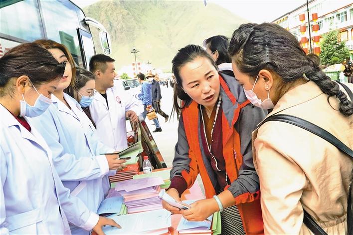 圖為山南市疾病預(yù)防控制中心工作人員在今年雅礱文化節(jié)期間,面向市民開展健康知識宣傳。段敏 攝
