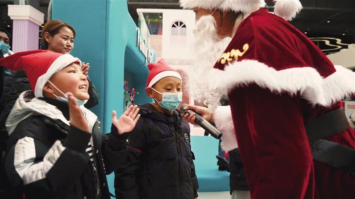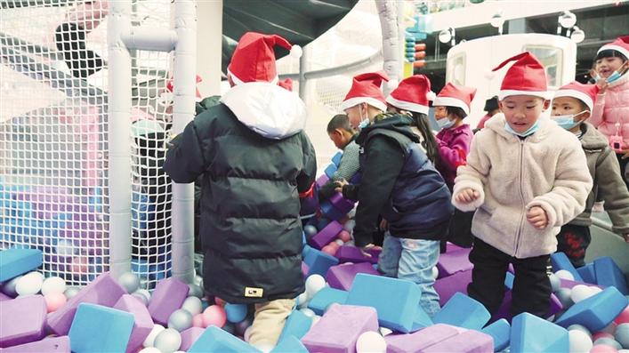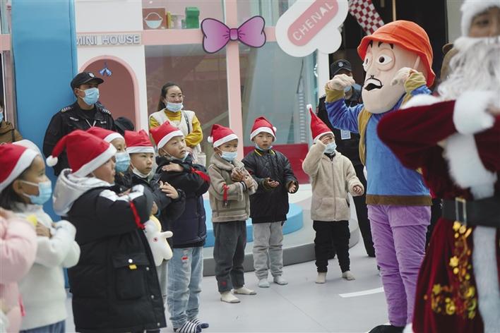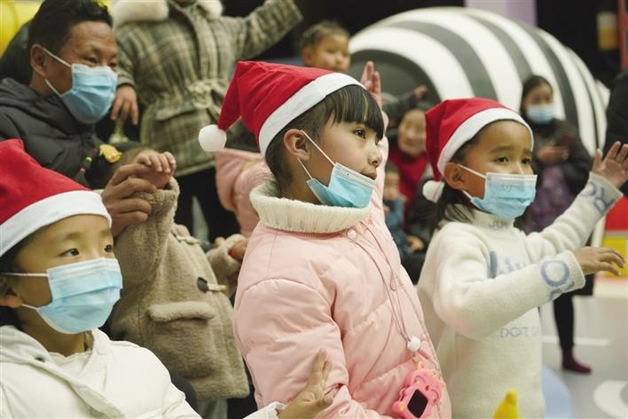 旋轉(zhuǎn)木馬、淘氣堡、滑梯……7歲的丹增達(dá)色玩得小臉紅撲撲,她告訴記者,這是她第一次來第三極歡樂世界,能和這么多小伙伴一起玩耍,真得很開心?!敖裉煊羞@么多叔叔阿姨們陪我們一起唱歌、跳舞,還送了我們小禮物,我很喜歡?!钡ぴ鲞_(dá)色笑著說。