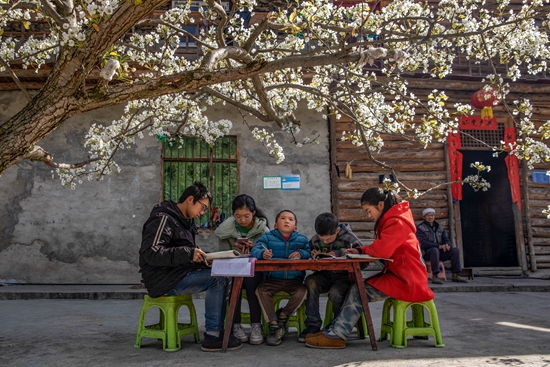 2020年4月26日,重慶市城口縣高楠鄉(xiāng)方斗村村民吳明安的院壩里,5名學生在全縣中小學復學前一天抓緊時間完成家庭作業(yè)。隨著疫情防控常態(tài)化,全國多個省市陸續(xù)復學。周健/攝