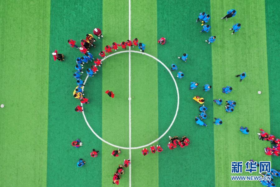 在西藏林芝市波密縣多吉鄉(xiāng)中心小學(xué),學(xué)生們?cè)趯W(xué)習(xí)西藏自治區(qū)級(jí)非遺項(xiàng)目“波央”的歷史(10月13日攝,無人機(jī)照片)。新華社記者 詹彥 攝