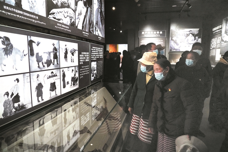 揭牌儀式結束后,現場人員有序參觀林周縣黨員黨性愛國主義教育基地《青春如火 高原如歌》大型展覽。