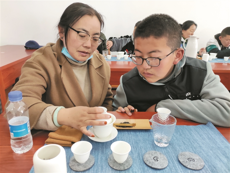 圖為學(xué)生和家長一起學(xué)習(xí)、體驗(yàn)茶藝禮儀知識(shí)。拉薩融媒記者 趙耀鐵攝