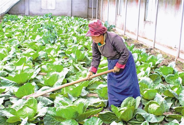 圖為洛扎縣建檔立卡貧困戶在吉堆農(nóng)業(yè)科技示范園內(nèi)種植蔬菜。 巴桑旺姆 攝