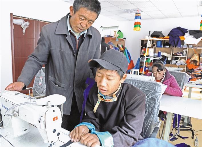 圖為洛扎縣殘疾群眾在該縣殘疾人就業(yè)培訓(xùn)基地參加縫紉技能培訓(xùn)。 巴桑旺姆 攝