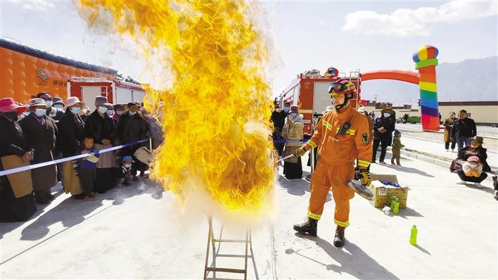圖為山南市消防救援支隊(duì)為群眾示范油盆火災(zāi)撲救方法。肖暄 攝