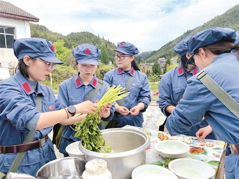 自制紅軍餐是拉薩市參訓(xùn)學(xué)員進(jìn)行革命傳統(tǒng)教育的內(nèi)容之一。紅軍餐中的每一道菜都有特殊的意義,學(xué)員們利用準(zhǔn)備好的食材、廚具、柴火等,完成了生火、洗菜、切菜、炒菜等紅軍餐制作全流程。一道道簡(jiǎn)樸卻不失美味的紅軍菜肴,讓大家深深感受到了井岡山革命時(shí)期生活條件的艱苦。
