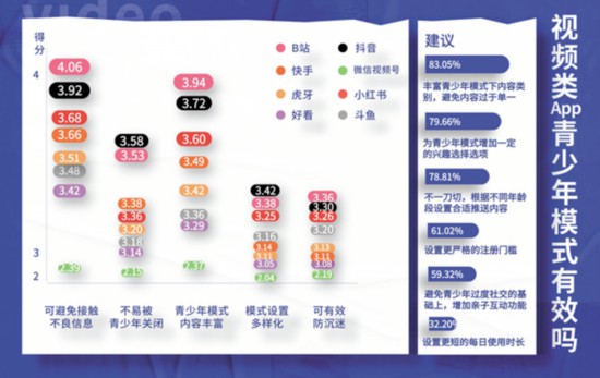 面對(duì)目前各平臺(tái)青少年模式良莠不齊的現(xiàn)狀,參與測評(píng)的大學(xué)生也有自己的見解。在剛剛畢業(yè)1年的95后教師姜煒眼里,部分軟件青少年模式下推薦的內(nèi)容不能滿足青少年的興趣?!昂每匆曨l給我推薦的都是動(dòng)畫片,我教的高中生不太感興趣;小紅書的青少年模式入口有點(diǎn)難找,找到以后推薦給我的都是考研相關(guān)內(nèi)容,對(duì)未成年人來說可讀性不高;斗魚、虎牙這類直播平臺(tái),本身大部分都是游戲類內(nèi)容,青少年模式下幾乎大多數(shù)內(nèi)容都會(huì)被屏蔽,我相信任何使用這兩款軟件的青少年都不愿意使用青少年模式。”不過,他給抖音和B站打了高分?!斑@兩款軟件的推送內(nèi)容除了有興趣類的,還有一些名師課程,符合青少年的興趣?!?/p>