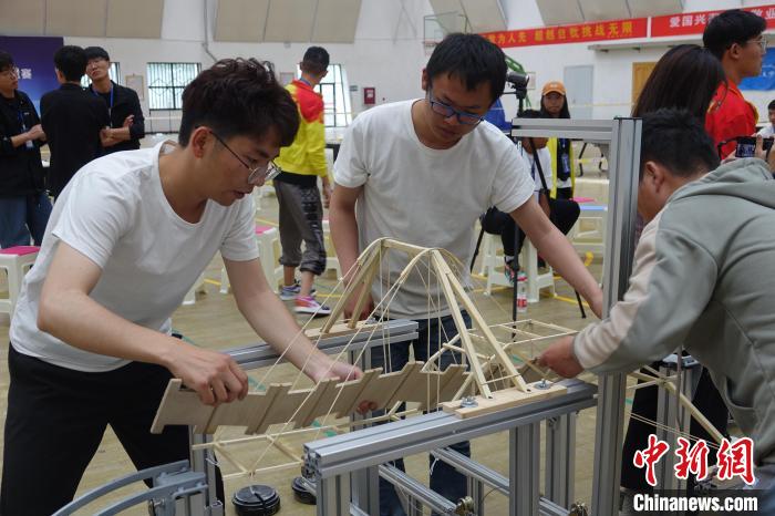 圖為第三屆西藏大學(xué)生結(jié)構(gòu)設(shè)計競賽比賽現(xiàn)場。冉文娟 攝