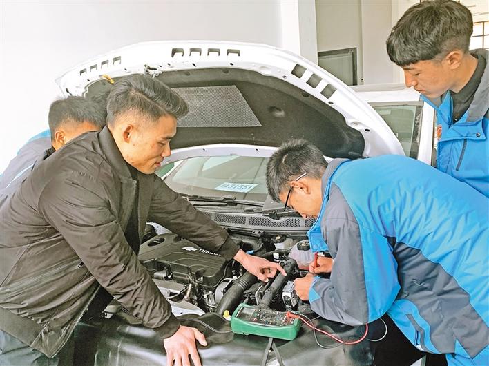 圖為林芝市職業(yè)技術(shù)學(xué)校汽修專業(yè)學(xué)生在老師的指導(dǎo)下進(jìn)行實操訓(xùn)練。記者 張猛 攝