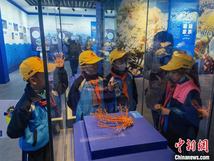 圖為正在參觀珊瑚展的西藏小學(xué)生。 謝牧 攝