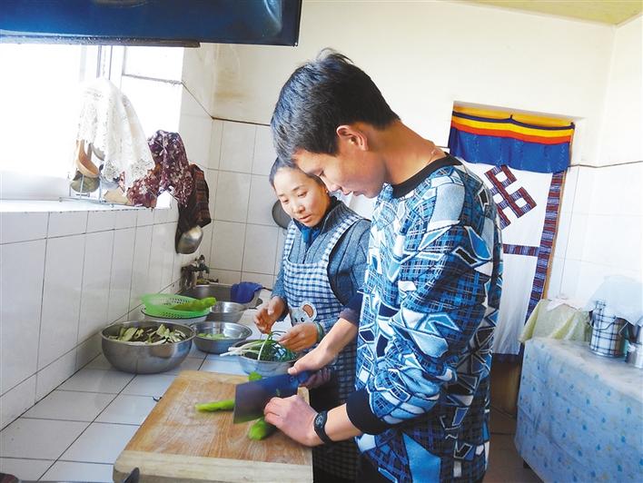“強巴塔青,你該起床了,不然就要遲到咯!”到男生臥室,德慶卓嘎溫柔地將7歲的“兒子”叫醒,目送他去洗漱后,將做好的酥油茶、糌粑、藏雞蛋等早餐端上飯桌,二人享受溫馨的早餐時光。