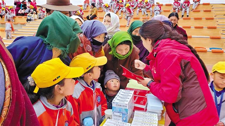 那曲市“掃黃打非”辦工作人員向農(nóng)牧民群眾和學生講解“掃黃打非”相關(guān)知識。記者 曲珍 攝