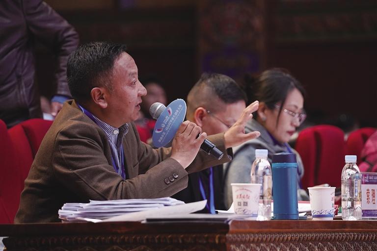 評(píng)委在點(diǎn)評(píng)選手的參賽項(xiàng)目。 圖/記者 阿旺尼瑪