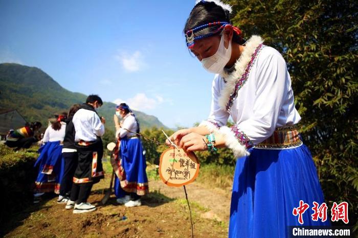四川阿壩學(xué)子在浙江瑞安植樹,并懸掛“同心樹”牌。王志 攝