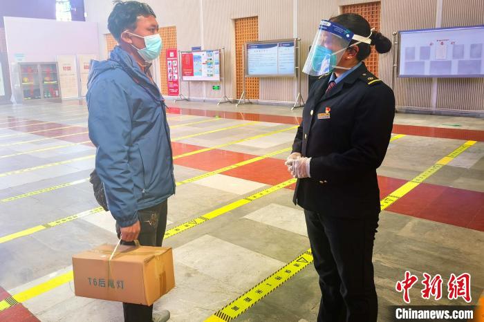圖為羅布在林芝火車站引導(dǎo)乘客?!?guó)鐵青藏集團(tuán)有限公司 供圖
